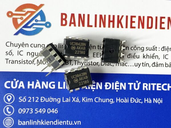 UC3842BN là một IC điều khiển PWM (Pulse Width Modulation) do ON Semiconductor sản xuất, thuộc dòng UC3842. Đây là một IC nguồn điều khiển PWM được sử dụng rộng rãi trong các bộ nguồn xung và các ứng dụng liên quan đến chuyển đổi điện năng như bộ biến tần, nguồn cấp điện AC-DC, và DC-DC.